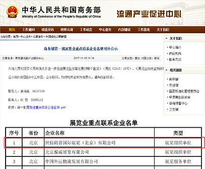 世信朗普被国家商务部纳入首批重点联系会展公司