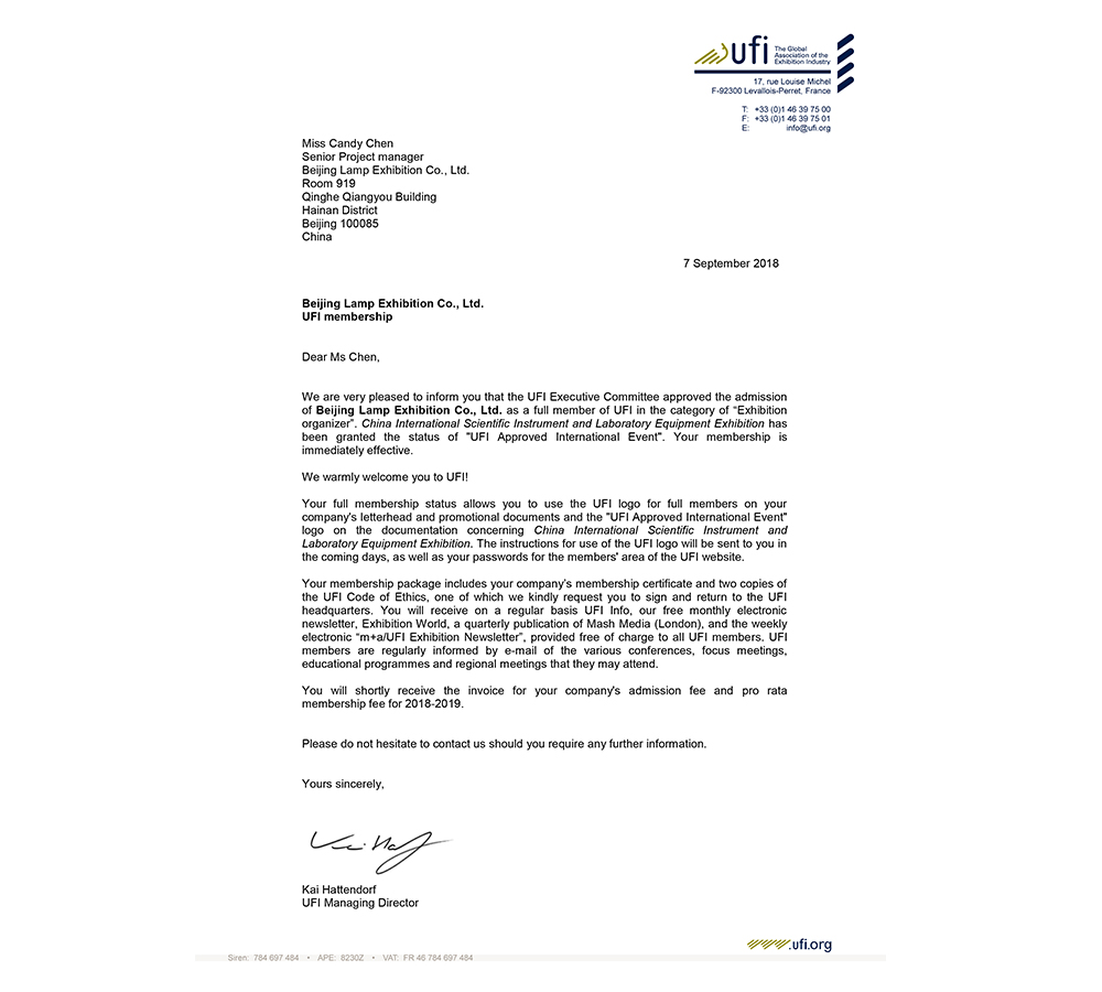 中国国际科学仪器及实验室装备展览会通过UFI认证